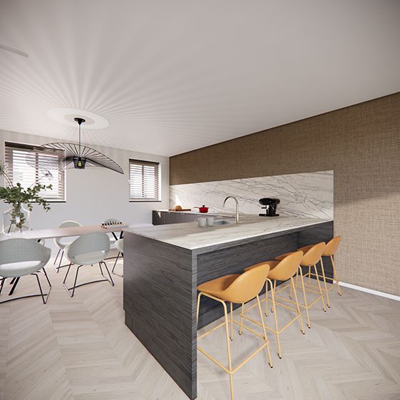 Met een ruim woonoppervlakte van ca. 176 m², verdeeld over 3 niveaus, biedt appartement 5 een unieke woonbeleving. Deze royale maisonnette combineert de uitstraling van een eengezinswoning met het comfort en de luxe van nieuwbouwappartementen.